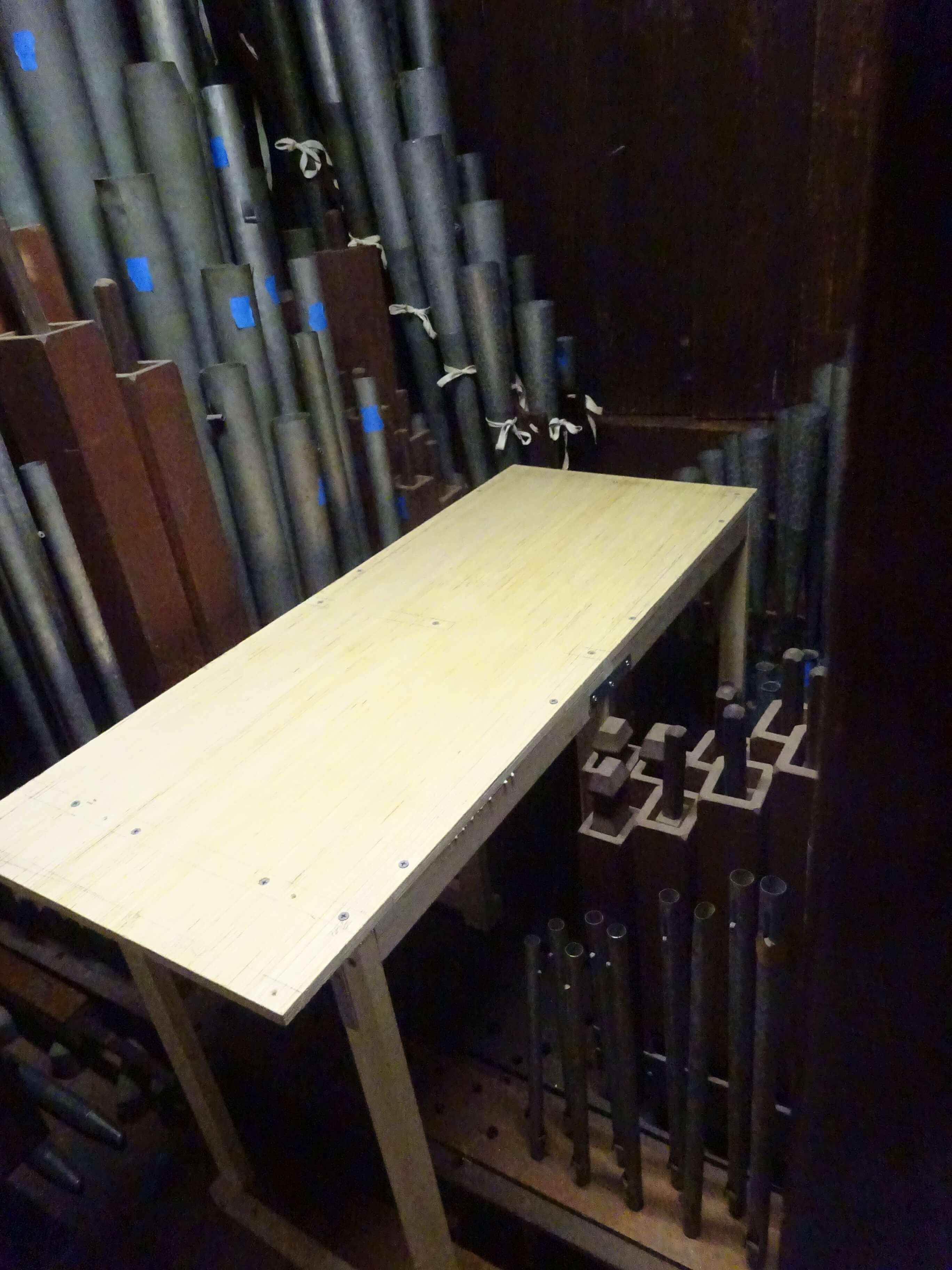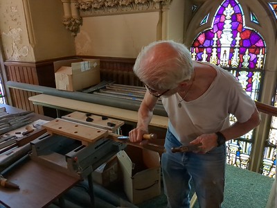 Chris repaired the cracked toe board of Great Trumpet/Clarion and performed additional miscellaneous carpentry work: