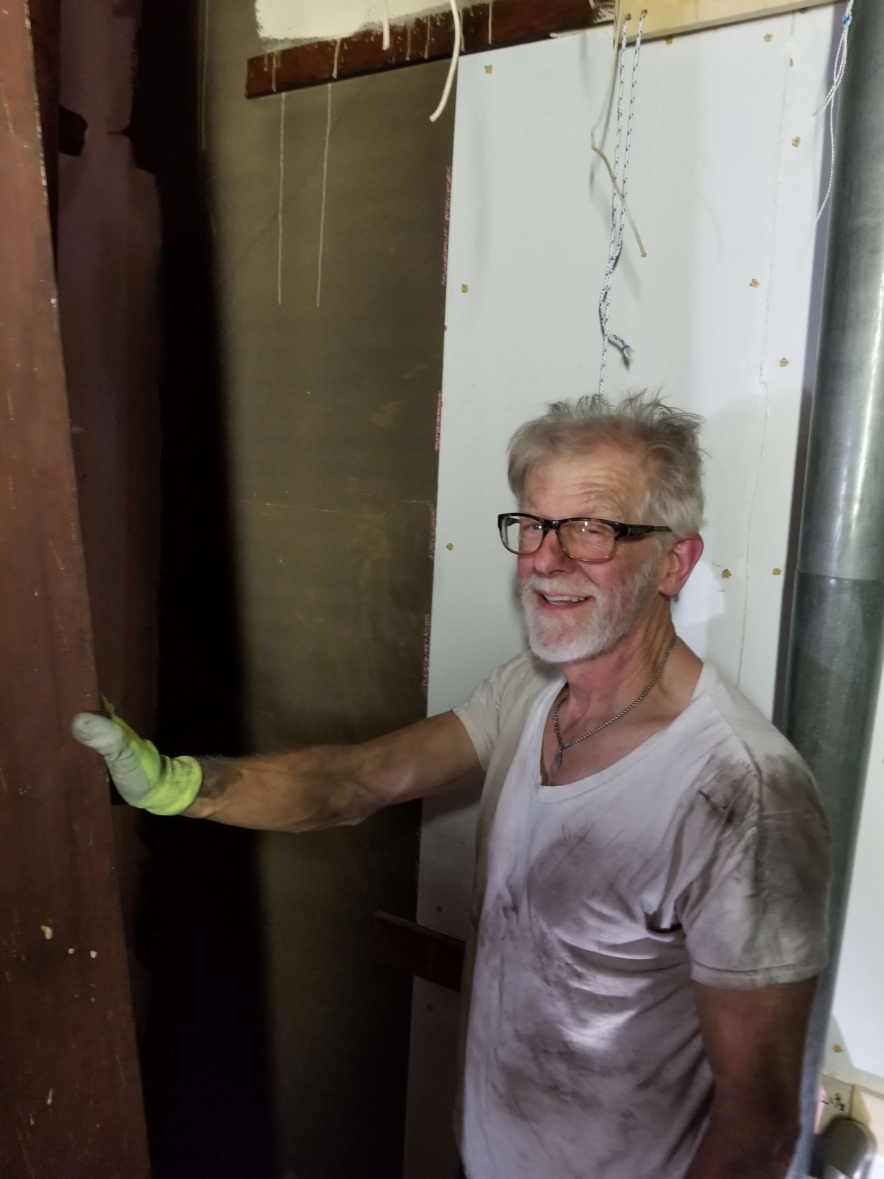 Chris, pictured above, covered with century-old soot after moving that heavy pipe!
