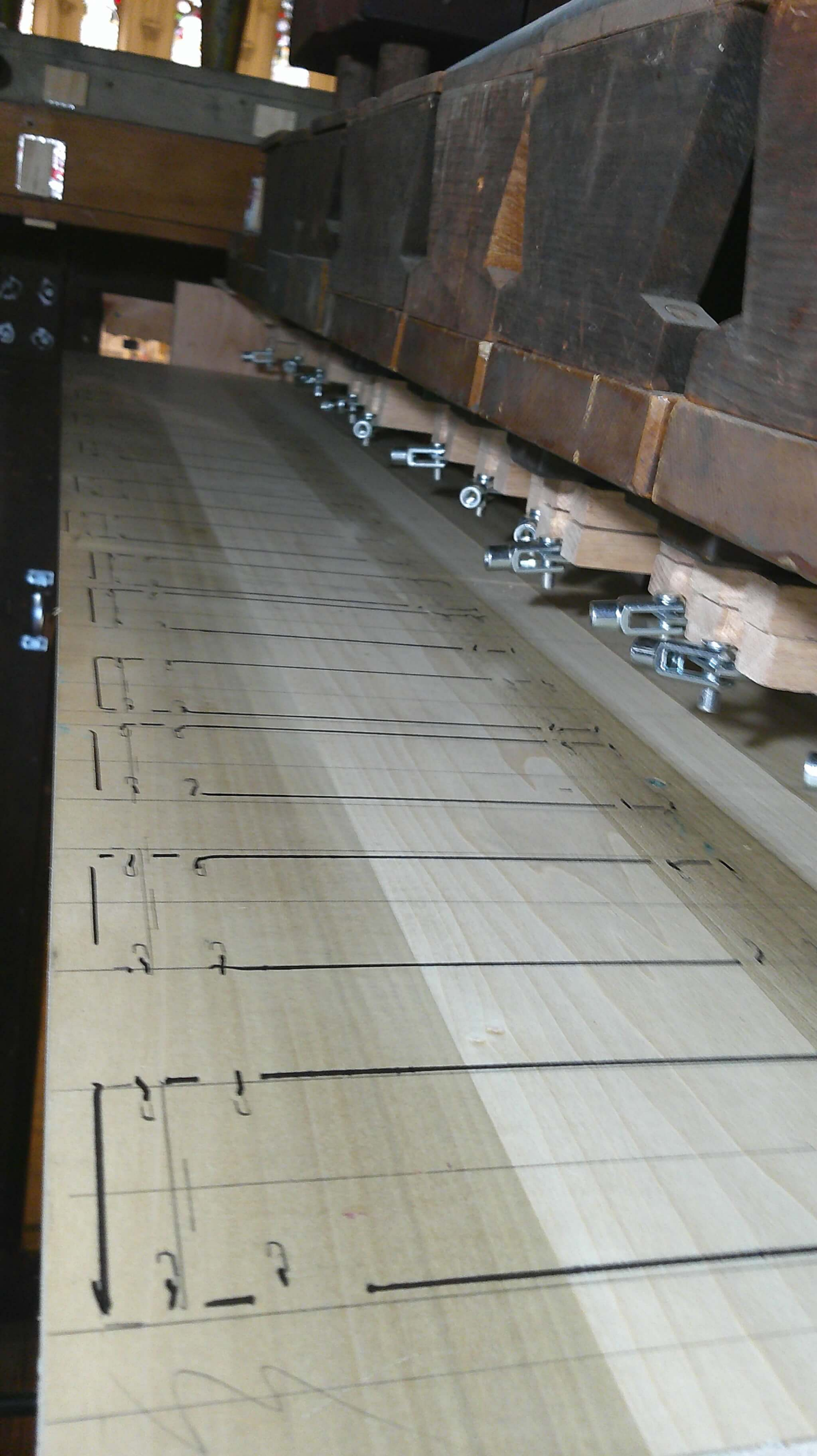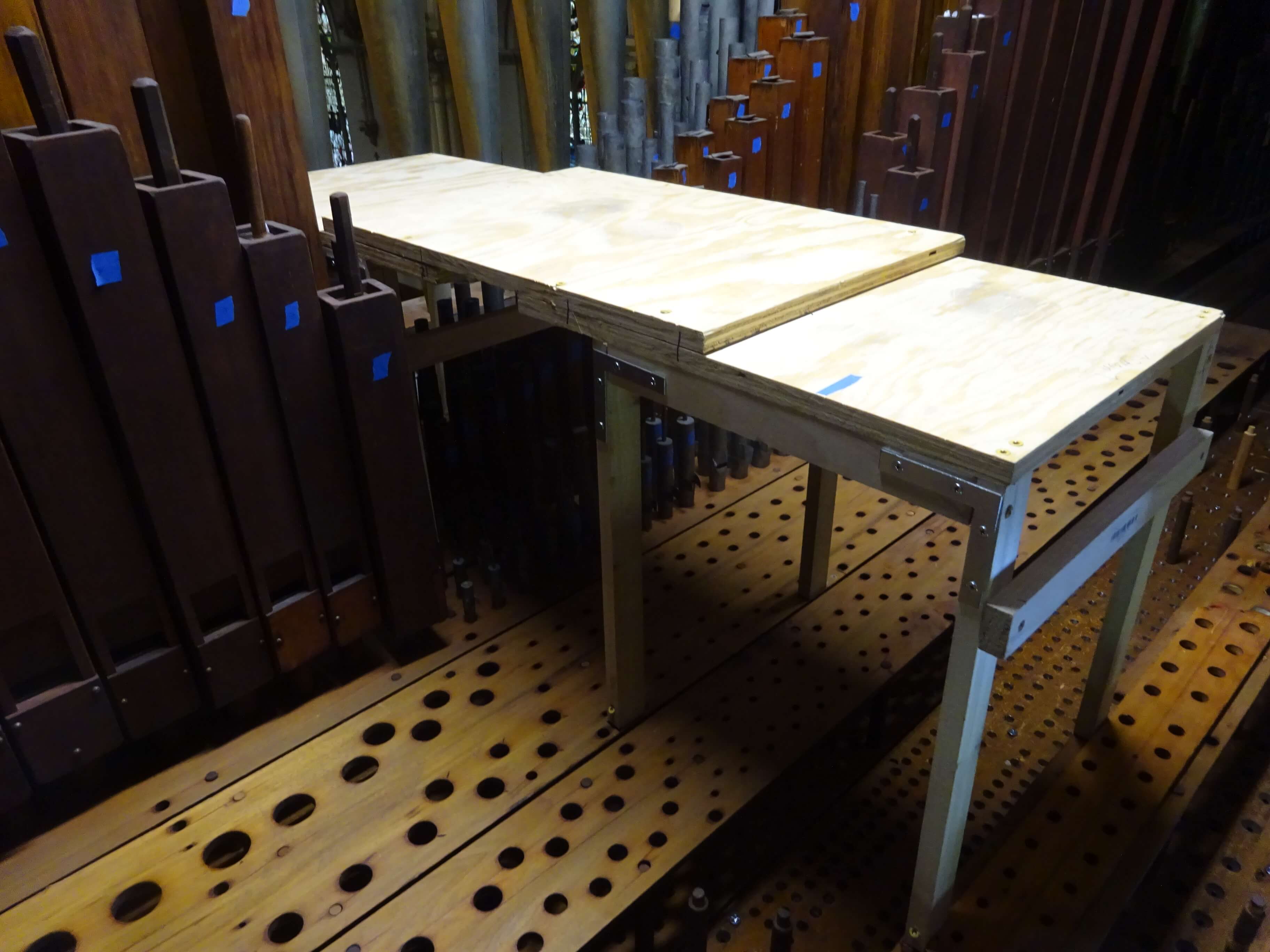 Chris constructed new “perches” down center of Great and Swell divisions to facilitate tuning, etc: