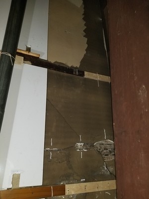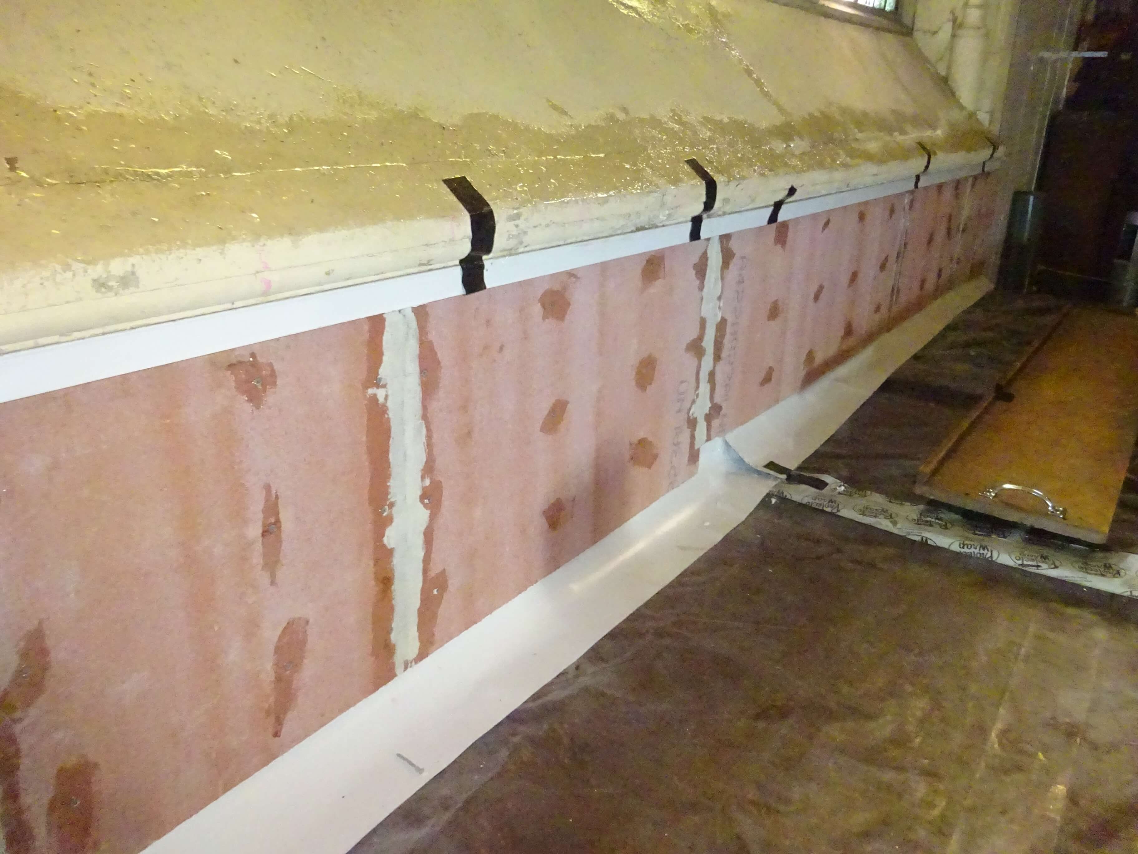 Pictured below: new paneling on left, deteriorated plaster on right.