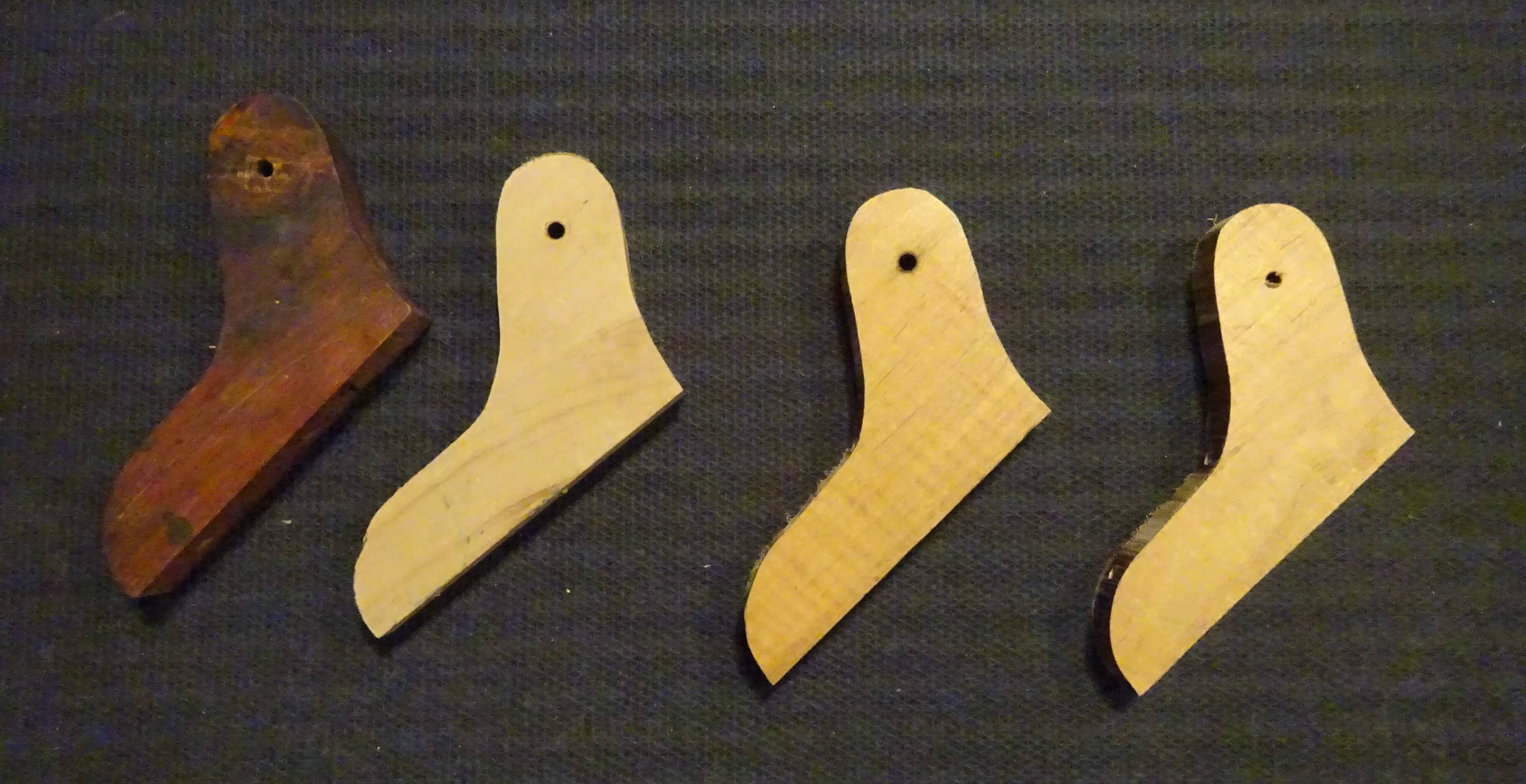 With the Choir division’s nonfunctional 1923 motors removed, Chris then installed the 8mm clevis forks on oak mounting blocks: