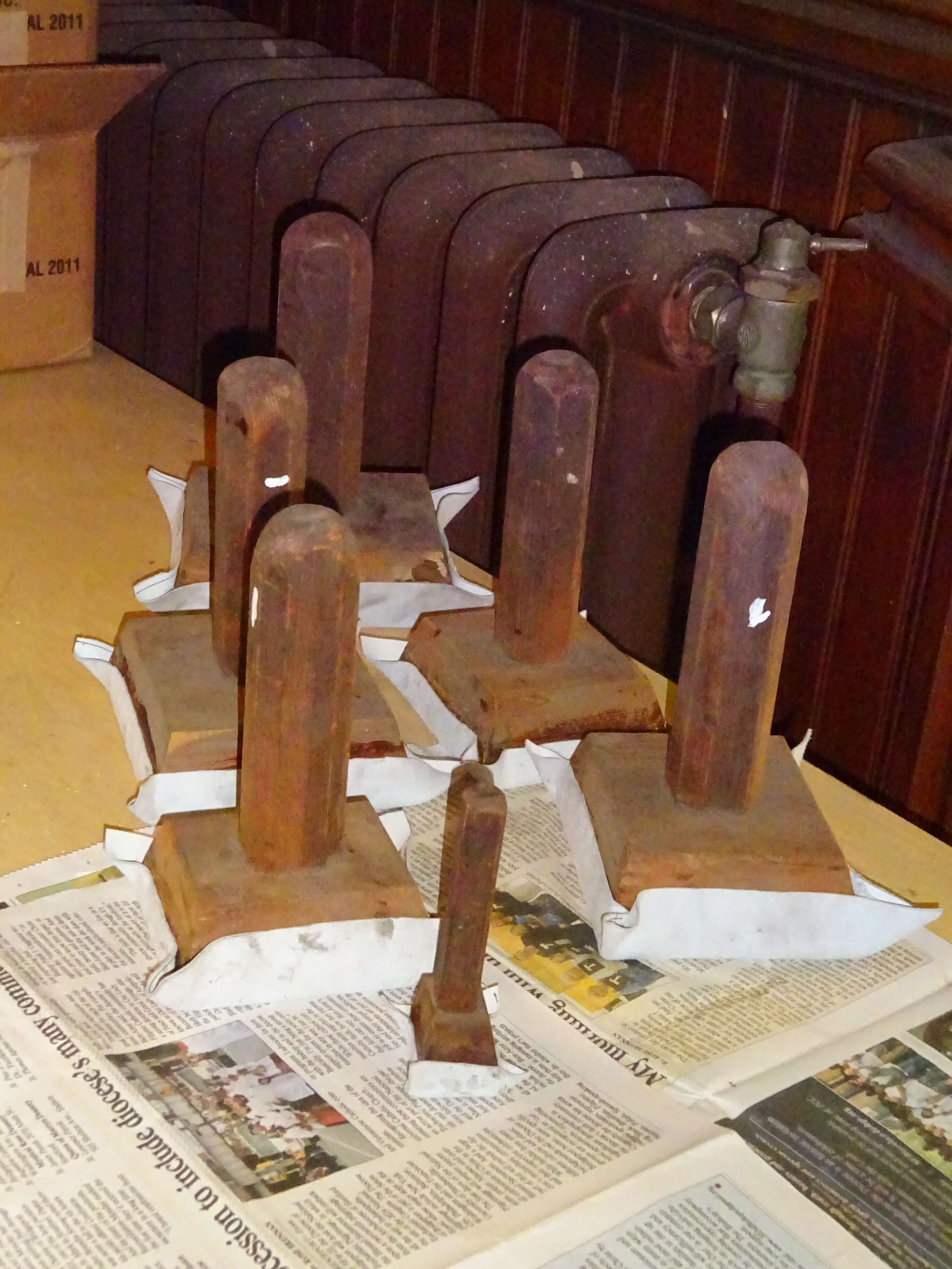 Several broken shade dogs of Swell and Choir were replaced with custom reproductions made by Abbé Kevin Kerscher, ICKSP. Leftmost in photo below is original, the others are Abbé Kevin’s reproductions: