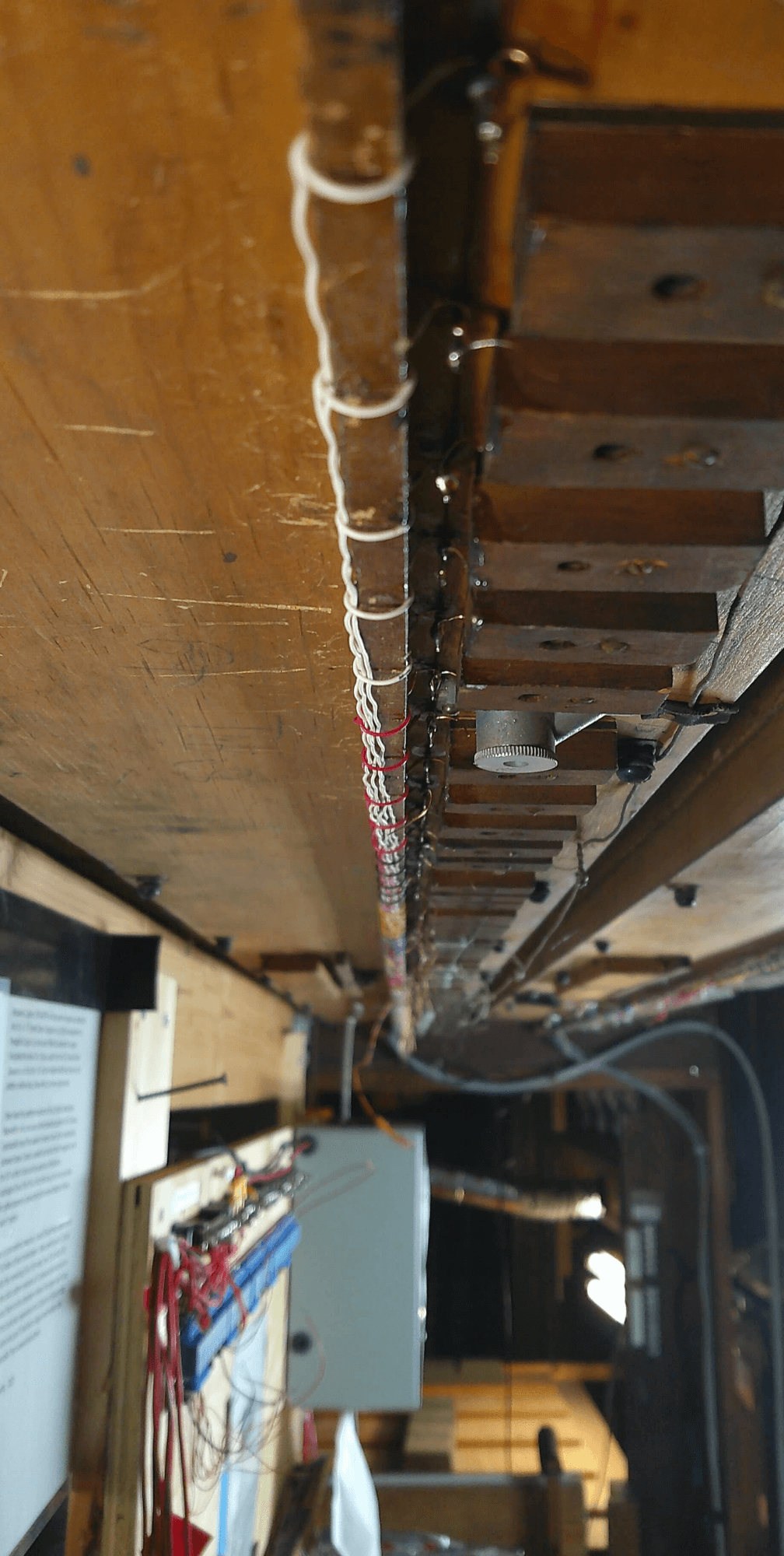 In 2024 Chris installed shade motors for Swell and Choir shades, replacing the 1923 whiffletree motors which no longer worked. The two motors were procured by Valley Organ Restoration Co, at no cost to your parish, from a recently dismantled but well-maintained organ in Pennsylvania: