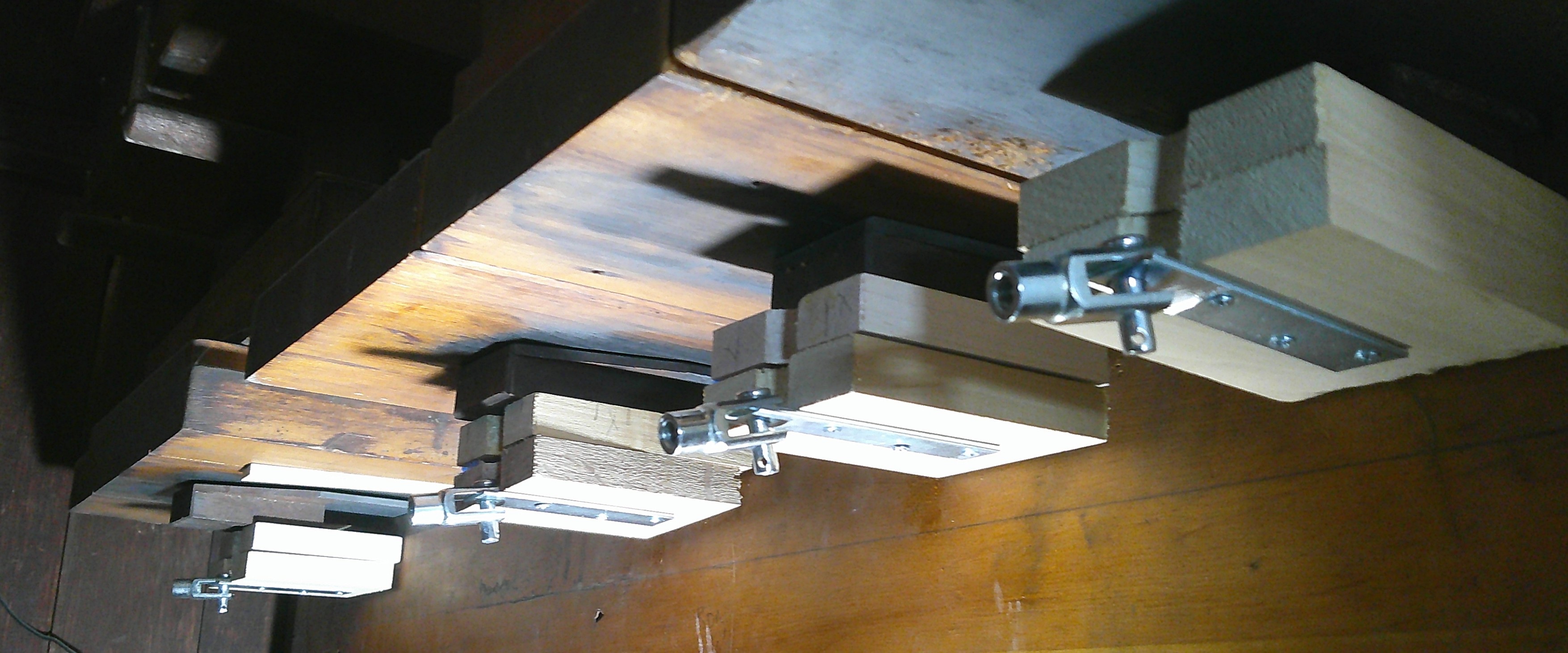 Chris constructed new “perches” down center of Great and Swell divisions to facilitate tuning, etc: